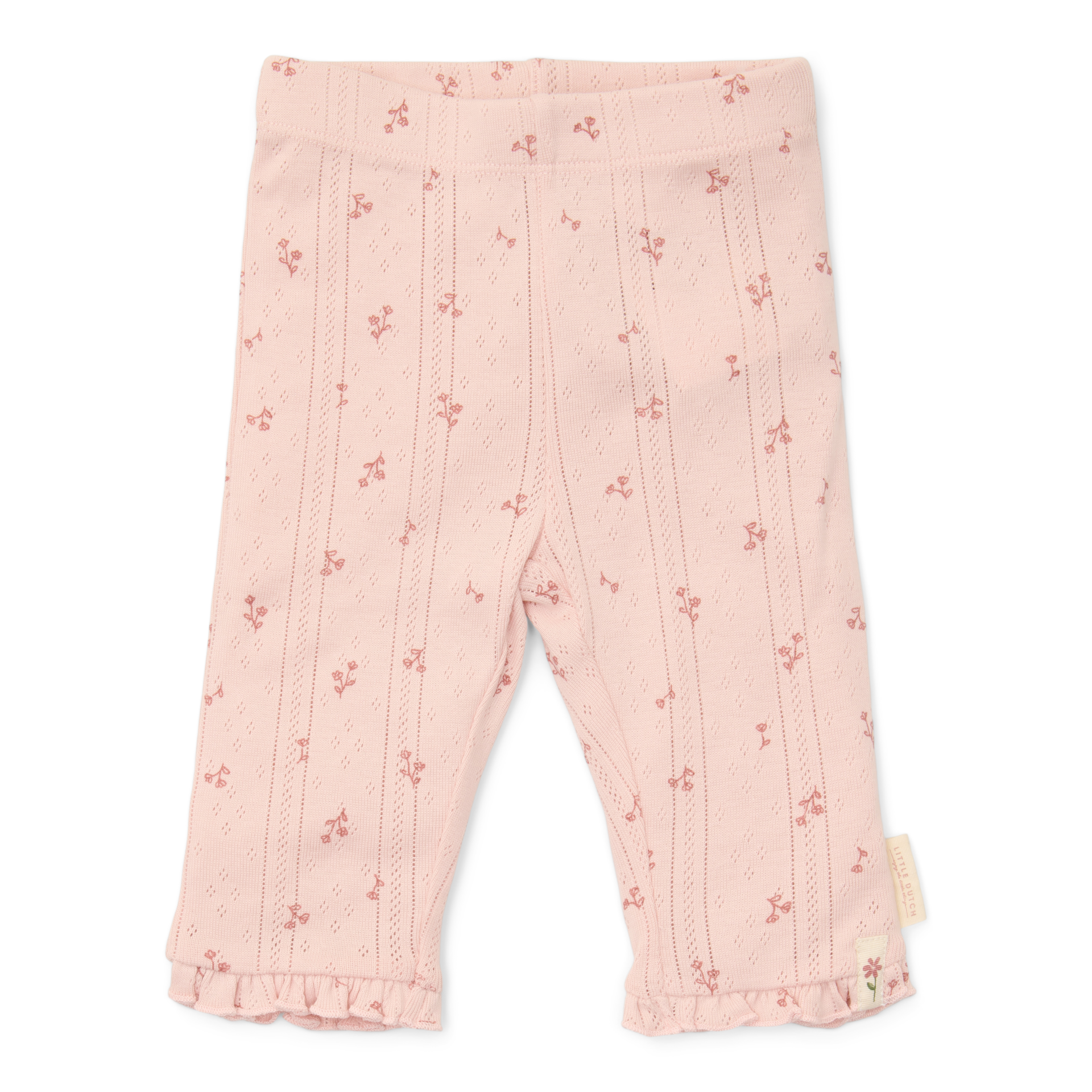 Pointelle perfectie! Deze schattige legging combineert comfort met een betoverend ontwerp. De verfijnde pointelle structuur van de stof, in een prachtige lichte tint roze, is versierd met een betoverende print van kleine bloemetjes. Gemaakt van zacht biologisch katoen, biedt deze legging de hele dag comfort voor je kleintje. De elastische tailleband zorgt voor een goede pasvorm en bewegingsvrijheid, ideaal voor actieve baby’s. Combineer met het bijpassende t-shirt en maak er een co-ord set van, of mix en match met elk ander item uit de Fairy Garden-collectie.