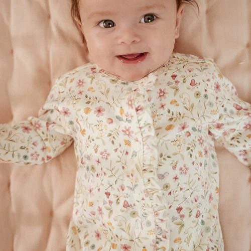Geniet van liefdevolle momenten in Fairy Garden-stijl! Dit schattige boxpakje is versierd met vrolijke bloemen en schattige bosdieren, zoals eekhoorns en prachtige vogels. De charmante ruches langs de sluiting geven het een lief en verfijnd detail. Om makkelijk luiers te verschonen en aan- en uit te kleden, heeft het een opening met drukknoopjes bij het kruis en aan de voorkant. Gemaakt van zacht, biologisch katoen, zorgt het voor een comfortabele pasvorm voor je kleintje. Combineer met een rompertje voor een gecoördineerde look of mix en match met andere items uit de Fairy Garden-collectie.