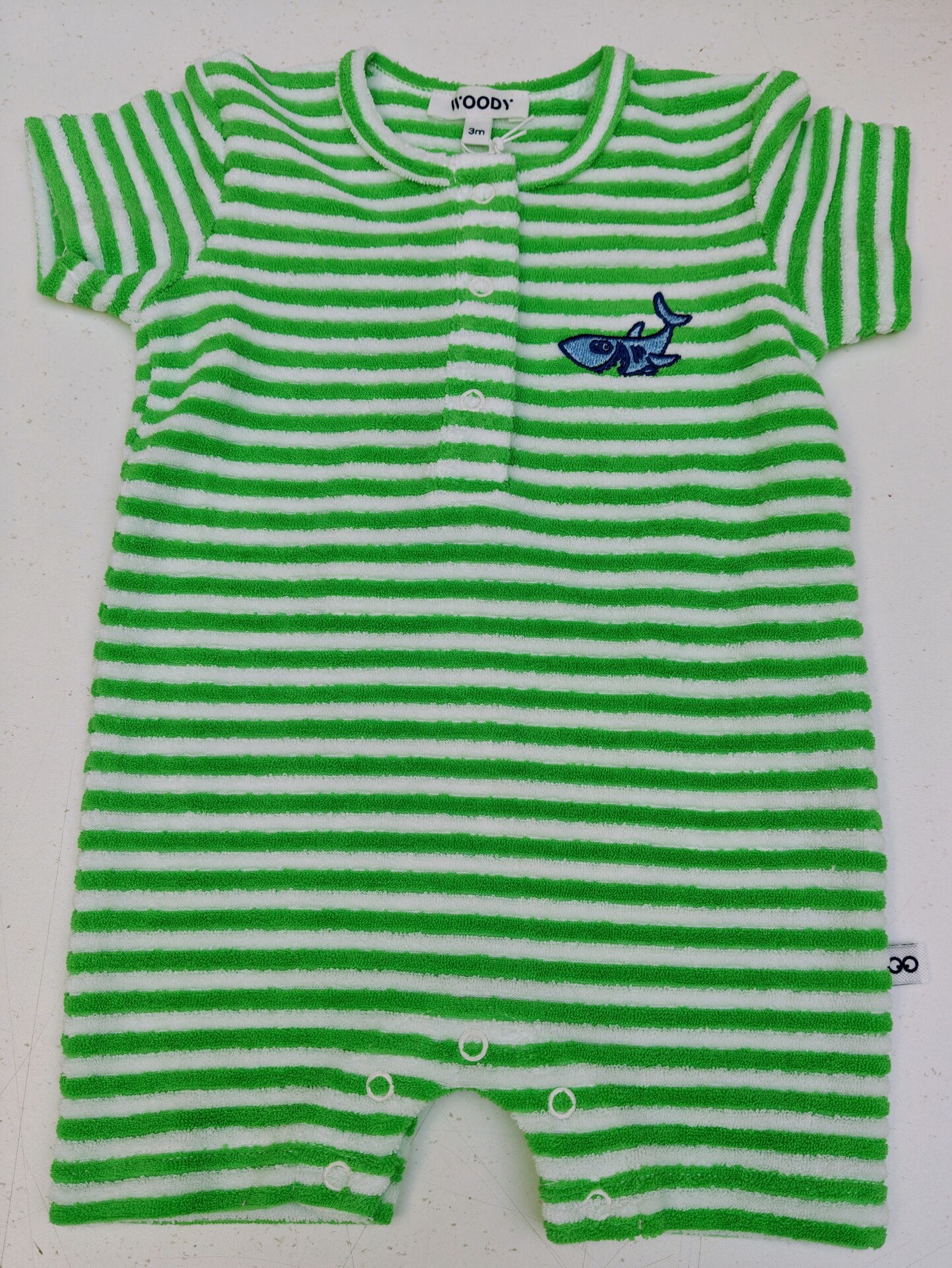 Schattige onesie unisex in badstof groen en witte streep .